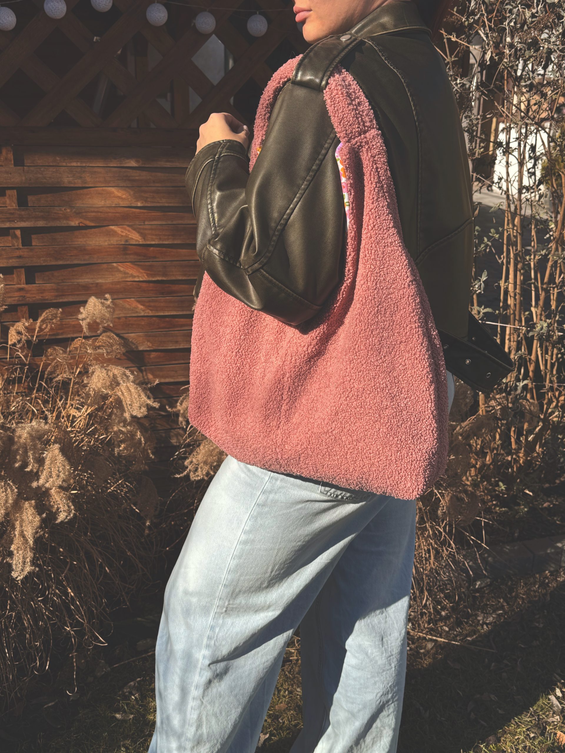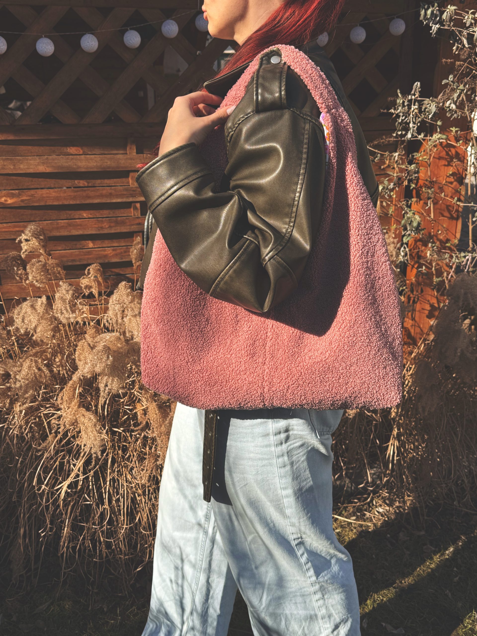 Torba bouclé w kolorze brudnego różu łączy funkcję praktyczną z dekoracyjną. Dzięki temu uzupełnia stylizację i ułatwia codzienne wyjścia.